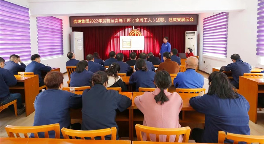 3月21日,公司舉行2022年度首屆“貴繩工匠”(金牌工人)述職、述成果展示會。集團公司黨委副書記、工會主席馬明剛參加展示會并講話。