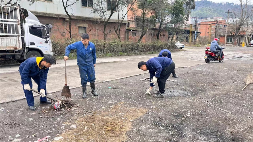 贈書儀式結束后,公司和貴繩社區組織開展了學雷鋒志愿服務活動,近30名青年志愿者發揚不怕苦、不怕臟的精神,對集團公司辦公大樓、股份公司辦公大樓、廠區道路、職工食堂等周邊區域內煙頭、廢紙、食品塑料袋等垃圾進行了全面清理打掃。