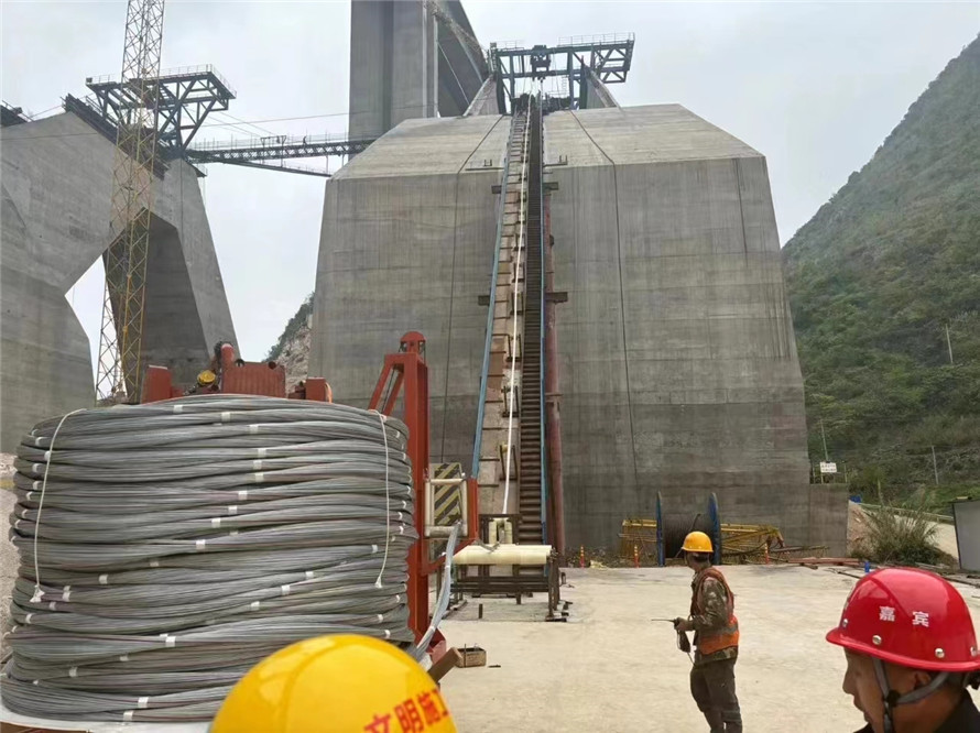 花江峽谷大橋上部構件全部由我公司負責生產提供,包括主纜索股、吊索、纏繞絲、貓道繩、扶手繩以及施工繩等。大橋左右幅各設置一根主纜,每根主纜由217根索股組成,單根索股長約2380米,每根索股由91根直徑5.7mm 1960MPa級鋅鋁鎂合金鍍層鋼絲集束組合而成。本次采用的合金鍍層鋼絲相較傳統鋼絲具有更優越的耐腐蝕性,能提升大橋主纜的使用壽命。