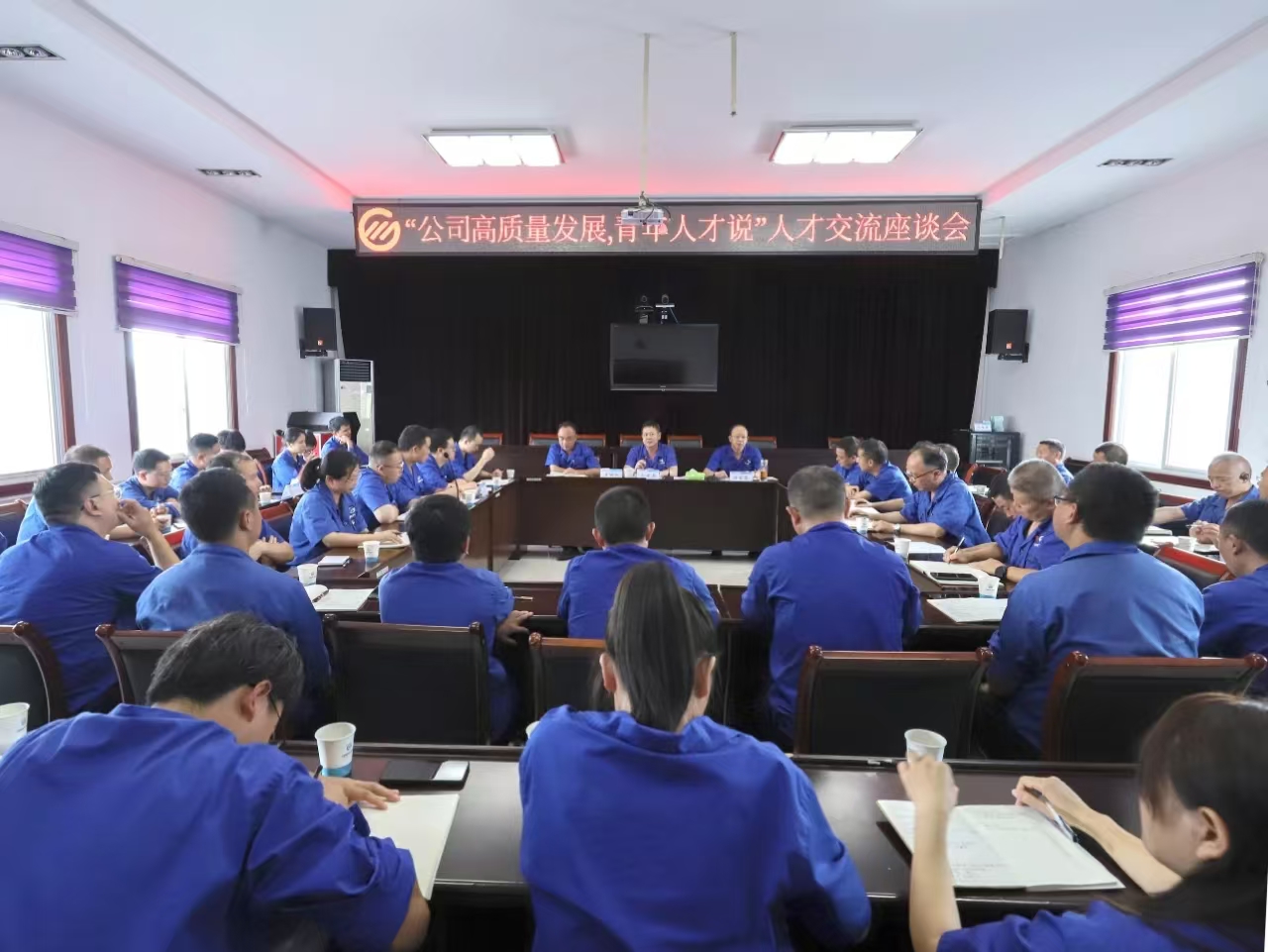 8月8日,“公司高質量發展 青年人才說”人才工作座談會召開。集團公司黨委書記、董事長馬顯紅出席會議并講話,黨委副書記、副董事長、總經理汪家強,黨委副書記、工會主席馬明剛,相關單位、部門負責人和各類人才代表60余人參會。