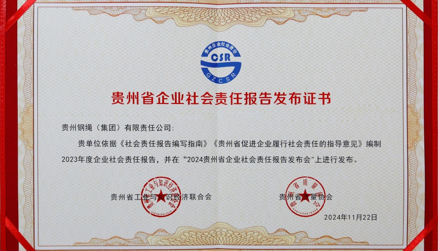 11月22日,2024年貴州省企業社會責任報告發布會在貴陽市舉行,公司再被授予“貴州省履行社會責任五星級企業”,這是公司自2012年以來,連續十二年向社會發布社會責任報告,并連續四年被授予該榮譽稱號。