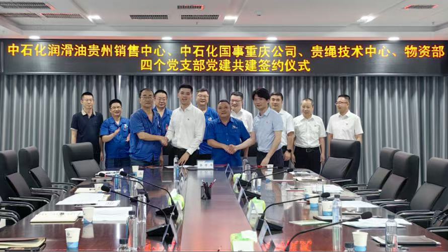中國石化潤滑油有限公司貴州省銷售中心黨支部、中石化國際事業重慶有限公司黨支部、貴繩技術中心黨支部、貴繩物資部黨支部等四個黨支部負責人簽訂了黨建聯建共建協議,決定堅持黨建引領,運用黨建聯建共建模式,搭建“五個一”常態化運作機制,推動相關方資源共享、優勢互補、長效交流,共同繪就“協同高效、陽光透明、互利共贏”的合作新藍圖,攜手書寫高質量發展新篇章。