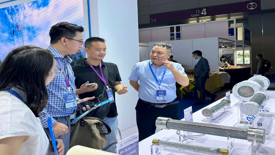 在展出期間,中海油、中廣核、招商局集團等國內外企業領導和專家蒞臨展位參觀交流,了解公司相關產品在抗疲勞性能、水密處理、智能化等關鍵技術上的創新突破。參觀嘉賓對貴州鋼繩打破國外技術壁壘、助力海洋能源開發自主化的系列成果給予肯定,并圍繞海洋工業裝備升級、深海資源開發合作等方面進行了交流。