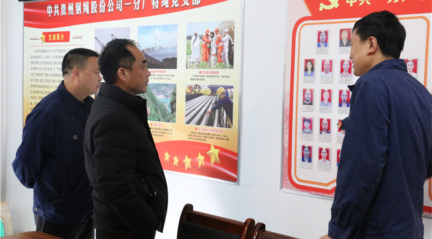 12月7日,集團公司黨委副書記、工會主席馬明剛帶隊到一分廠特繩黨支部、技術中心黨支部、二分廠鋼絲車間拉絲黨支部調研,實地了解黨支部標準化規范化建設及示范黨支部創建情況。
