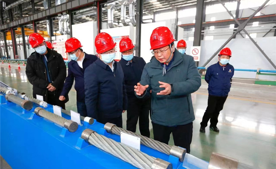 肖凱林宣講了黨的二十大精神,查看了新區纜索工程公司、一分廠、三分廠、四分廠生產現場,并主持召開調研會,聽取了公司新區建設、生產經營、科技創新、履行全面從嚴治黨、黨風廉政建設、意識形態、安全環保和國企改革三年行動有關工作完成情況匯報。