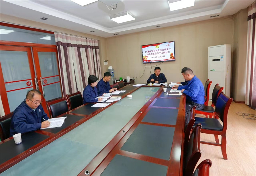 11月2日,集團公司黨委委員、副總經理梁鵬到巨龍商貿公司黨支部和保衛部黨支部宣講黨的二十大精神,并列席旁聽巨龍商貿公司黨支部理論學習中心組學習研討會。