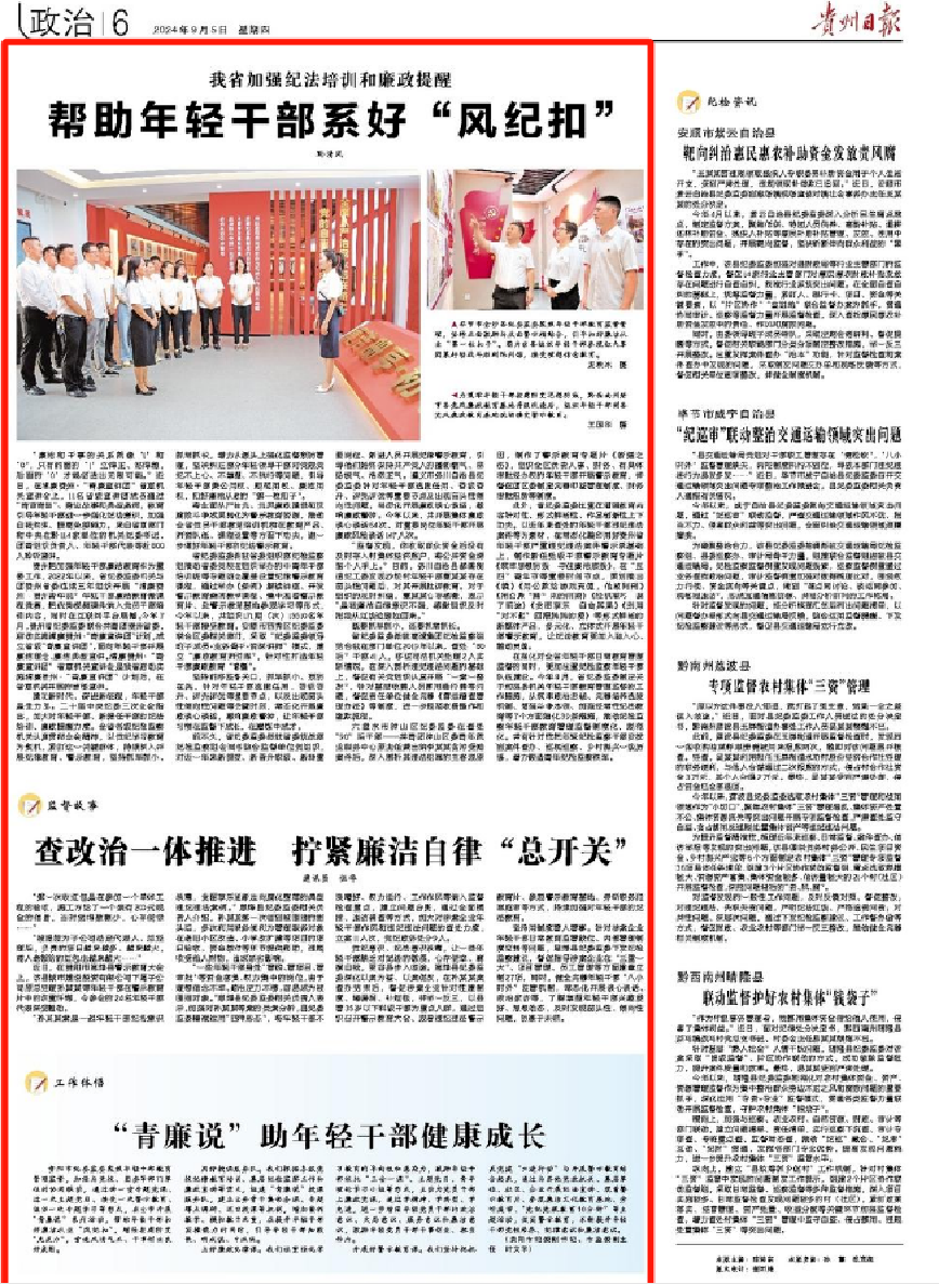 貴陽市紀委監委聚焦年輕干部教育管理監督,加強與黨校、團委等部門單位的協同聯動,通過講一堂專題黨課、過一次主題黨日、接受一次警示教育、組織一次專題學習等形式,在全市開展“青廉說”系列活動,幫助年輕干部扣好廉潔從業“風紀扣”,增強拒腐防變“免疫力”,營造風清氣正、干事創業良好氛圍。
