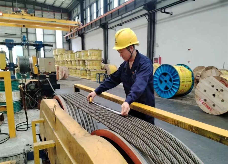 樹木蔥蘢、轟轟烈烈的夏日悄然來臨,伴隨著機(jī)器的轟鳴聲,一臺臺成繩機(jī)正在有條不紊地編織著精美的鋼絲繩產(chǎn)品。